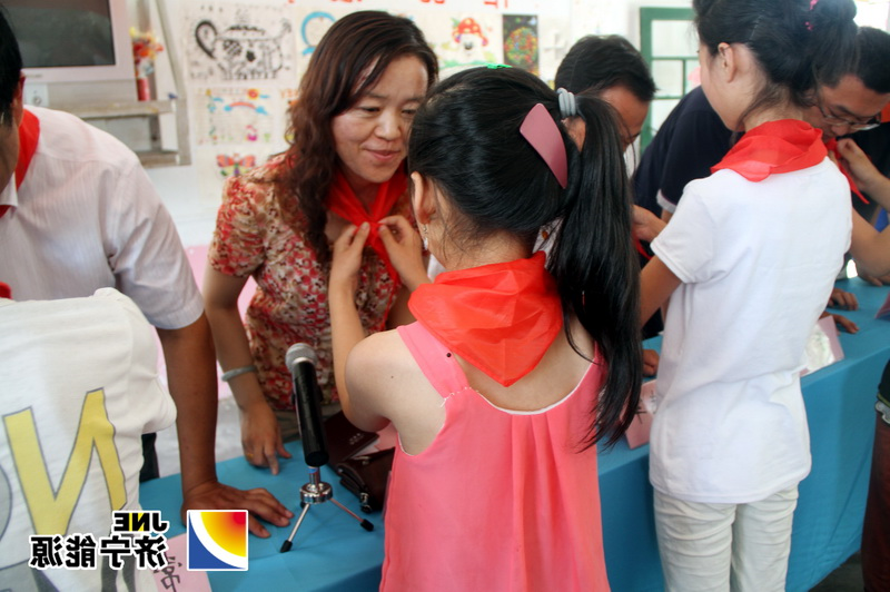 最后,孩子们为给予他们关怀的爱心人士们带上了红领巾并深情致谢。