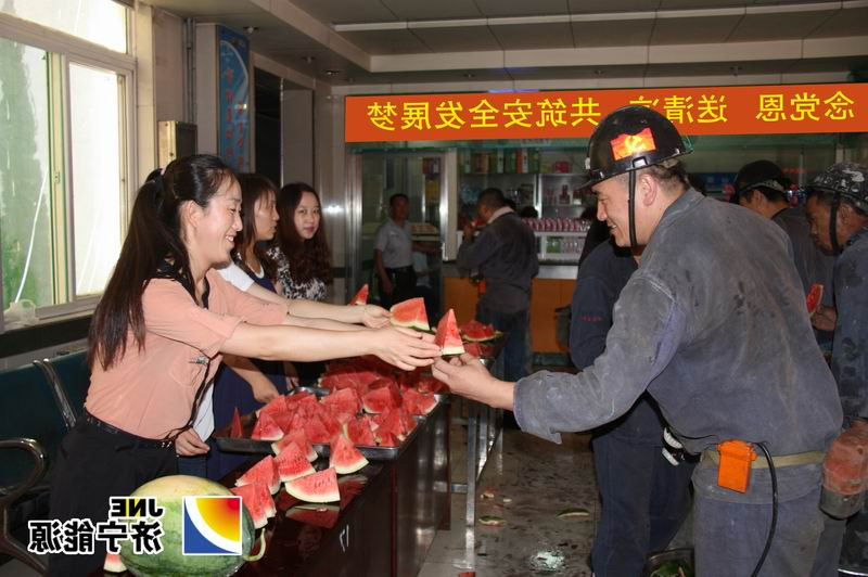 行为现象,工人协管员及要素女党团员是为第一线下井工作人员送上清香味爽口的无籽西爪和真诚的健康安全祝贺,给宽广老同学带去丝丝清凉一夏,殷切献爱心。这次行为共输送无籽西爪2400余斤,给予矿人员和宽广工作人员的不同青睐。