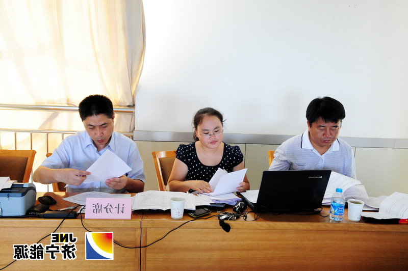 由市国资委外派监事和济宁能源发展集团政治部组成的计分小组计分现场